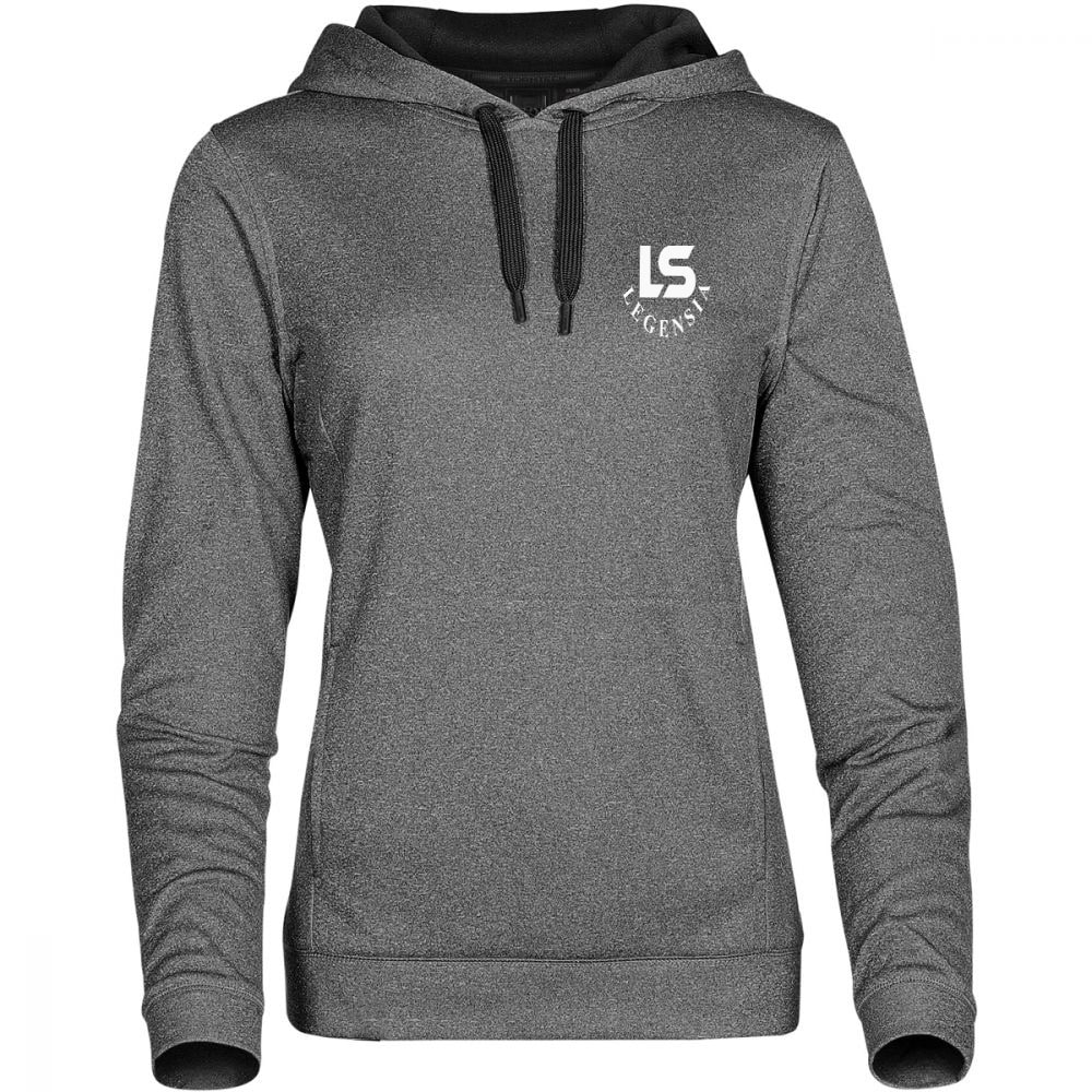 Specially treated, water-repellent fabric allows you to wear this performance hoody inside or out. Extra-wide contrast drawstrings with rubber tips help maintain the hood profile for a more comfortable fit.